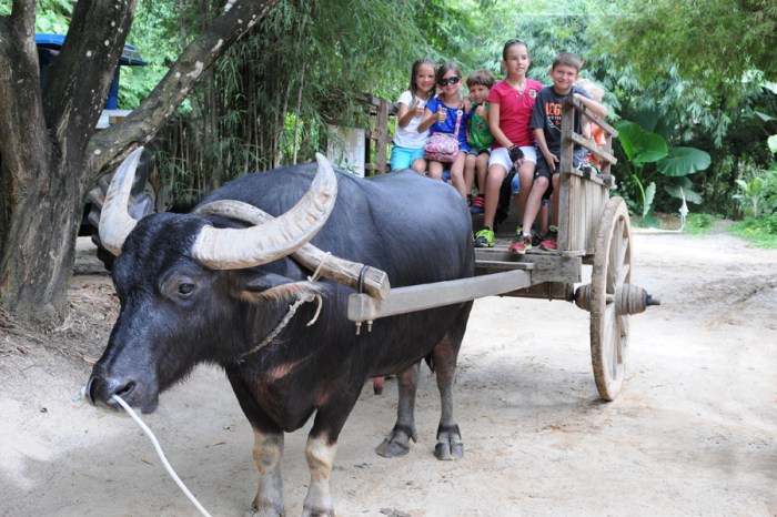 At the elephant sanctuary, we learned about the history of Thailand culture including elephants, farming, and cuisine.