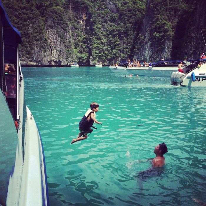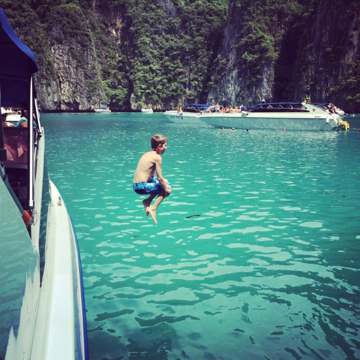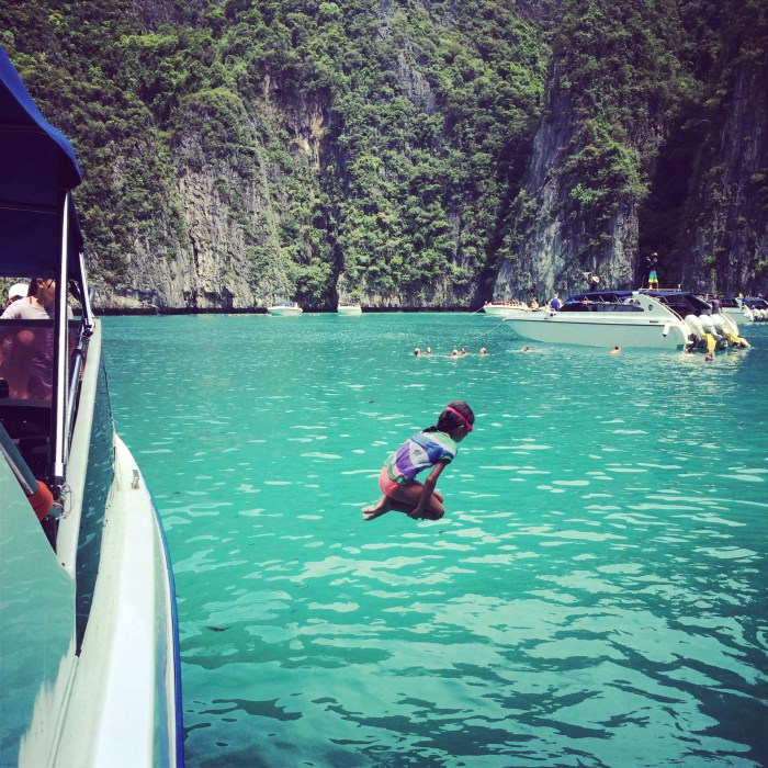 One day on a boat while in Thailand is not enough. So, we chartered a speed boat for another day with the Bruff family. This time, we visited Phi Phi Islands :