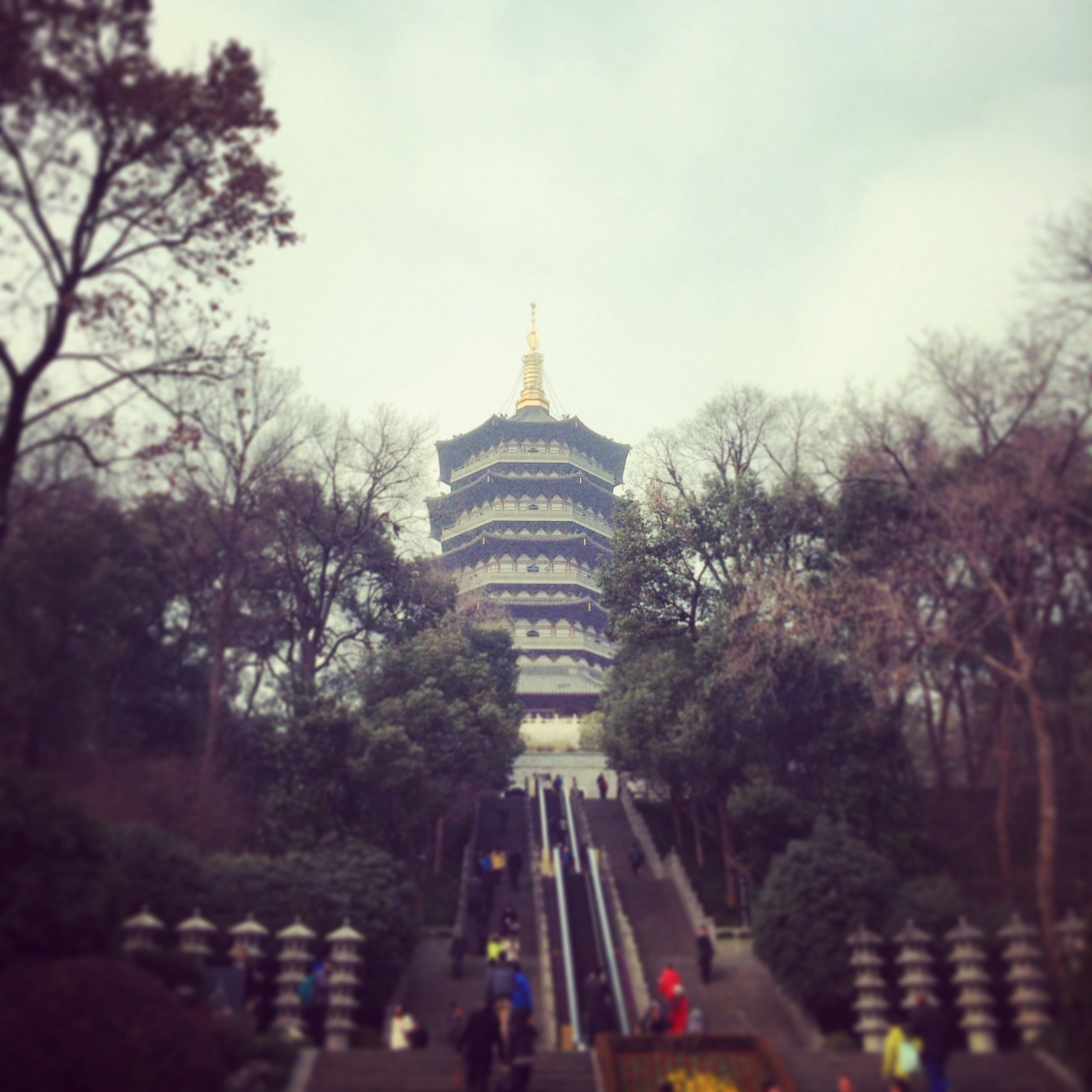 Hangzhou is home to many beautiful pagodas. One of the most popular is the Leifeng Pagoda. Originally built in 927 AD, it suffered damage from a Japanese pirate attack during the Ming Dynasty. The original structure eventually collapsed in 1924 after its remaining bricks were pillaged. This, due to local folklore and superstition that the bricks from the tower could repel illness and prevent miscarriage. A new five-story pagoda, built upon the original site, was opened in 2002 and houses a viewing area of the original ruins and foundation in its lower level.