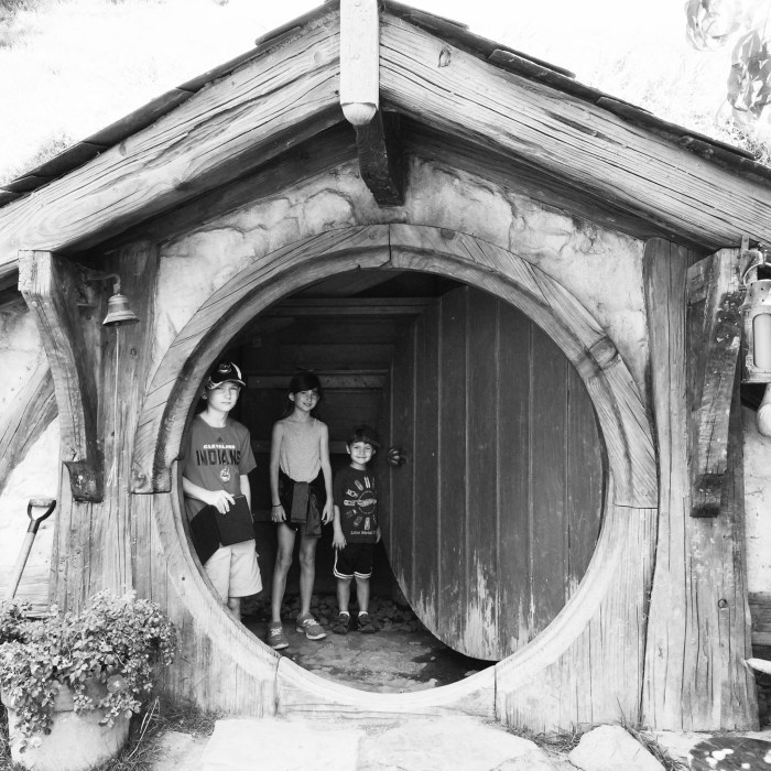 Nestled among a 1200 acre working sheep farm, Peter Jackson found the perfect setting for his Hobbit village. The Lord of the Rings and Hobbit literally came to life for Jack, Kate, and Luke as they explored Hobbit holes, the Green Dragon Inn, and the Mill.
