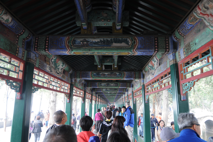 The Long Corridor: Roofed corridors connect the halls and pavilions. This “long corridor” contains 10,000 paintings on it’s walls and ceilings.
